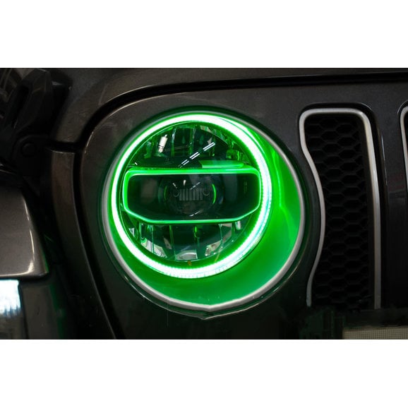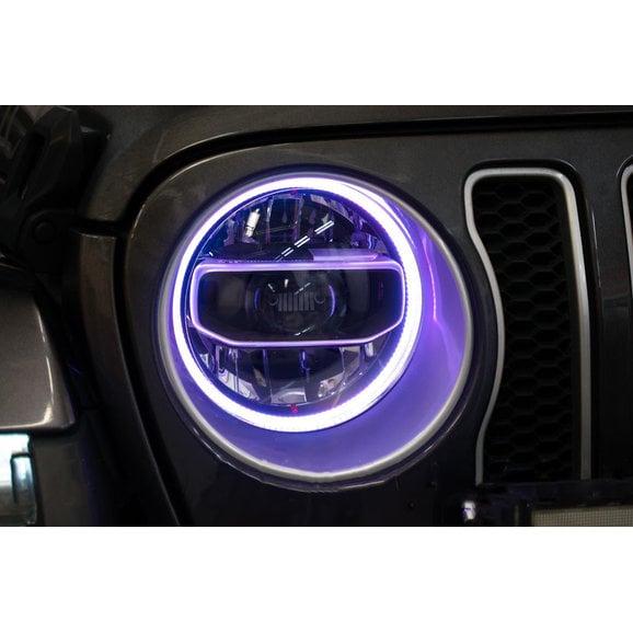 This Diode Dynamics RGBW Halo kit has been designed specifically for the Wrangler JL and Gladiator JT Headlights. It includes custom-sized halo rings that will give you full multicolor functionality over your DRLs. These HD LED halo rings are not just RGB, they are RGBW! That means there is an extra LED chip that is specifically white in color, right next to the standard red, green, and blue LEDs. By using an RGBW controller, you can activate and control the white chip independently of the colors. This provides a much more uniform, pure, and bright white color than the traditional method of combining all RGB signals so you can keep a clean, factory white appearance for everyday driving. These halos have been designed to be absolutely the brightest, most reliable halos on the market.They will add a distinct, unique look to your Jeep both day and night!