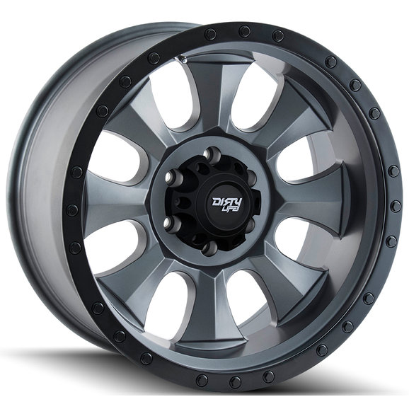 Dirty Life Race Wheels Ironman 9300 Street Series Wheel in Gunmetal with Matte Black Ring in 17x8.5 with 4.51in Backspace for 07-21 Jeep Wrangler JL, JK & Gladiator JT