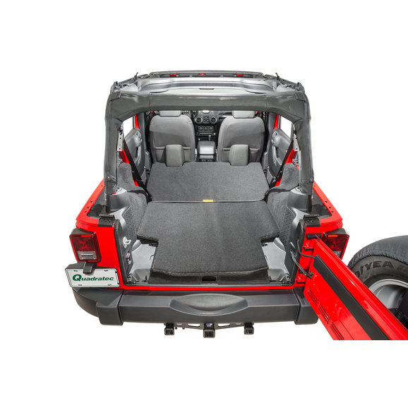 This is great for Unlimited owners who hate losing things down that bottomless pit between the rear seat and back cargo when the seats are down. This is perfect for dog owners, campers who sleep in the back after a day of wheeling or anyone who doesn't like the unfinished look when the seats are down. The Dirtydog 4x4 Trench Cover does not require any special tools to install and is made using the matching carpet. They flip up and down when the seat are moved up and down. The 2-Piece rear Crash Pad by Dirtydog is designed for being a comfortable place to lay while on an overnight getaway, or for pets who are a welcome addition on any trail ride or daily drive. The pad also provides extra protection for the rear cargo area, which is essential for storing important gear with the rear seat removed. Designed to match all Jeep interiors, the pad is reversible with a plush carpet on one side and easy to clean durable vinyl on the other side. The interior of the pad is made up of one inch memory foam which will provide a comfortable spot for pets to hang out. Available in gray color.