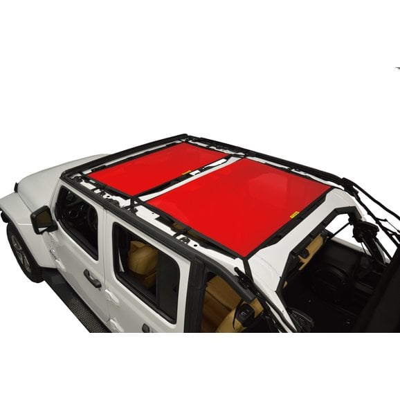 Four Door Specific Design: Dirtydog designed their Front & Rear Sun Screen to fit any Wrangler Unlimited JL no matter what trim package. The top can remain in place under soft tops. However, the front must be removed in order to attach hardtop Freedom Panels.