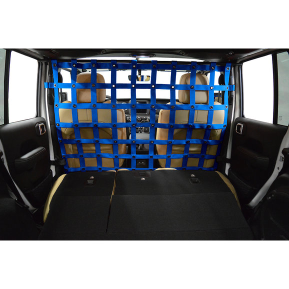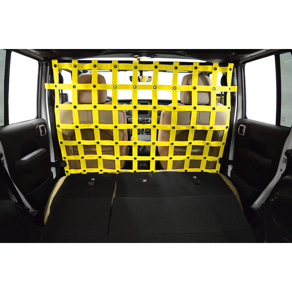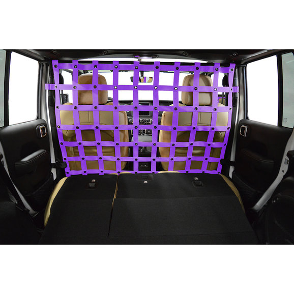 The Pet Divider by Dirtydog 4x4 is an easy solution for keeping cargo in place, and will provide a safe and secure area for any pets that you take along on your adventures. The netting is made from heavy duty polypropylene, which is very strong to keep everything secure. The pet divider installs easily behind the front seats in the Wrangler 4 door, and requires no drilling or modifications to the Jeep. This pet divider has also been designed to work with any soft top or hardtop with no interference at all. Available in many different color options to fit any interior color scheme for complete customization.