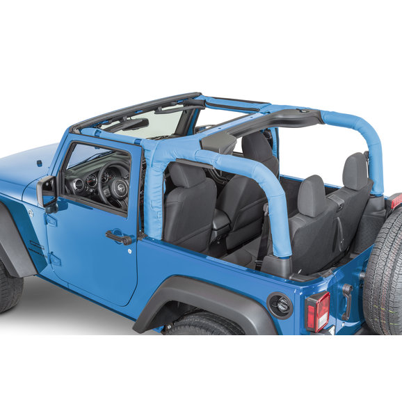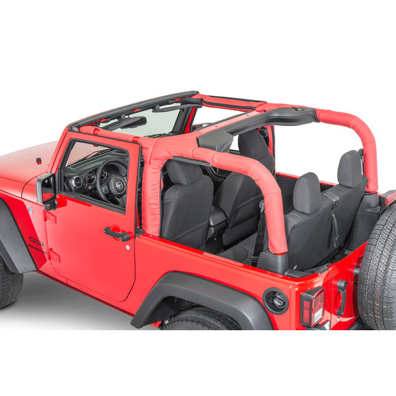 Dirtydog 4x4 custom roll bar covers are made from 100% solution dyed polyester fabric characterized by excellent strength, durability, water resistance, abrasion resistance, dimensional stability, UV resistance and mildew resistance. The fabric used is made of solution dyed yarns to give you exceptional color fastness along with no color rub off giving you years of service while minimizing fading and wear.