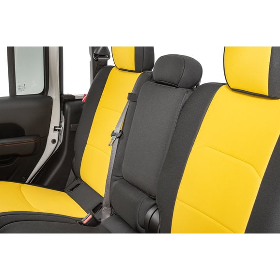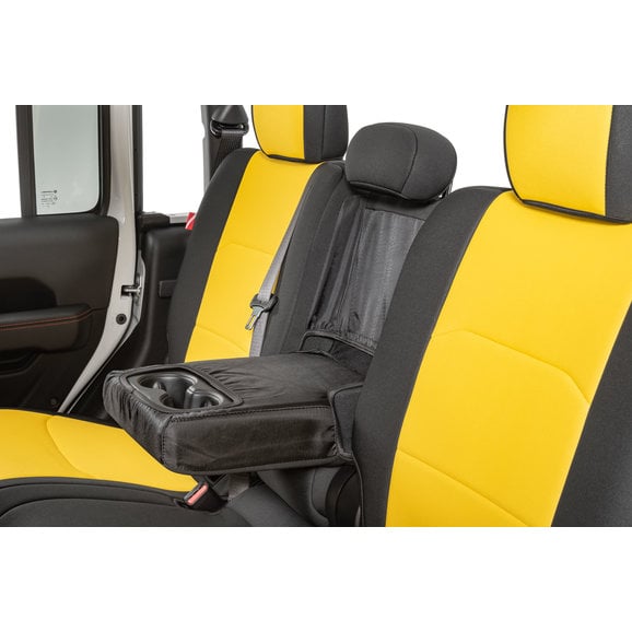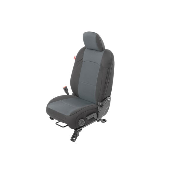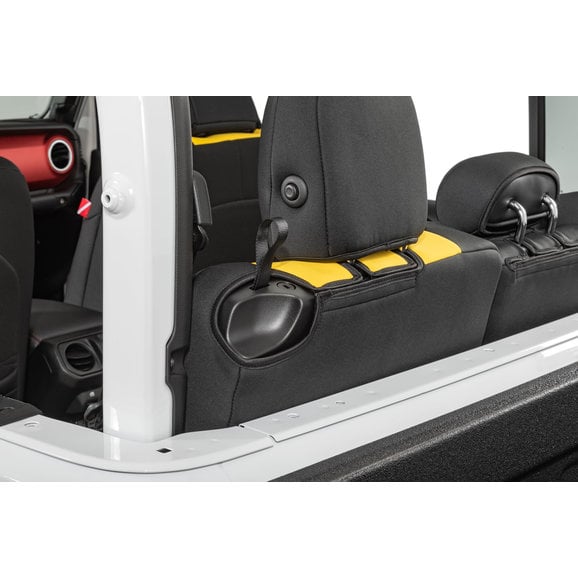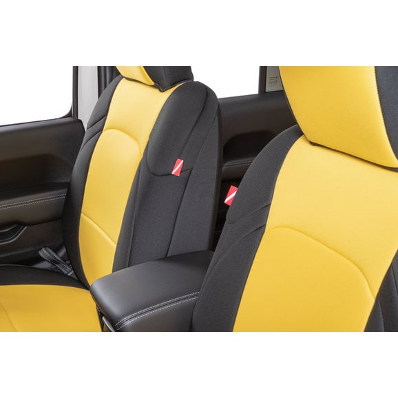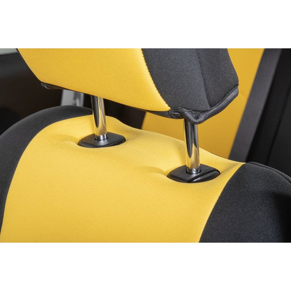 It’s like having custom made wet suits for your Gladiator JT seats! Protect your valuable upholstery from water, dirt, grime, and normal wear and tear while adding a customized look. Quadratec’s Exclusive Diver Down seat covers make an excellent choice for Jeepers with active lifestyles. Our custom fit seat cover kits are cut and patterned to each specific vehicle providing an exact fit like the original upholstery. Seat covers feature black neoprene backs and sides with your choice of seven great inner panel color choices to provide the ultimate interior makeover. The genuine neoprene material provides lasting durability with a soft cushioned feel. Our neoprene seat cover material has an excellent thermal resistance that stays cool to the touch on hot days yet warmer during the colder months. Diver Down seat covers retain all seat functions with provisions for side airbags. Kits come complete with front and rear seat cover pairs along with four headrest covers. Front seatbacks feature handy map pockets with generous storage capacity. Our do-it-yourself kits install in minutes over the existing upholstery using a combination of straps, buckles, elastic and hook & loop fasteners and there are no tools required. Hand wash and air dry.