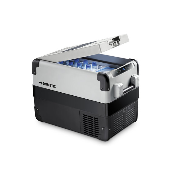 The Dometic CFX-40W is a mid-sized portable refrigerator/freezer with a 40 quart capacity able to accommodate 60 cans. The reinforced corners, durable lid coating, and detachable folding stainless handles make for a truly rugged and easy-to-transport unit. This energy efficient cooler uses compressor technology to rapidly cool the contents and can be set within a range of -7°F – 50°F with the soft touch buttons and digital temperature display. The CFX-40W can do this without using tons of valuable battery life, even in extremely warm weather. Incorporated WiFi allows for temperature monitoring and control from distances of approximately 50' away via the CFX app. Inside you’ll find a wire storage basket with divider to keep things organized and an energy-efficient LED interior light. It even has a USB port for on-the-go charging of smaller electronic devices. Best of all: no more ice!
