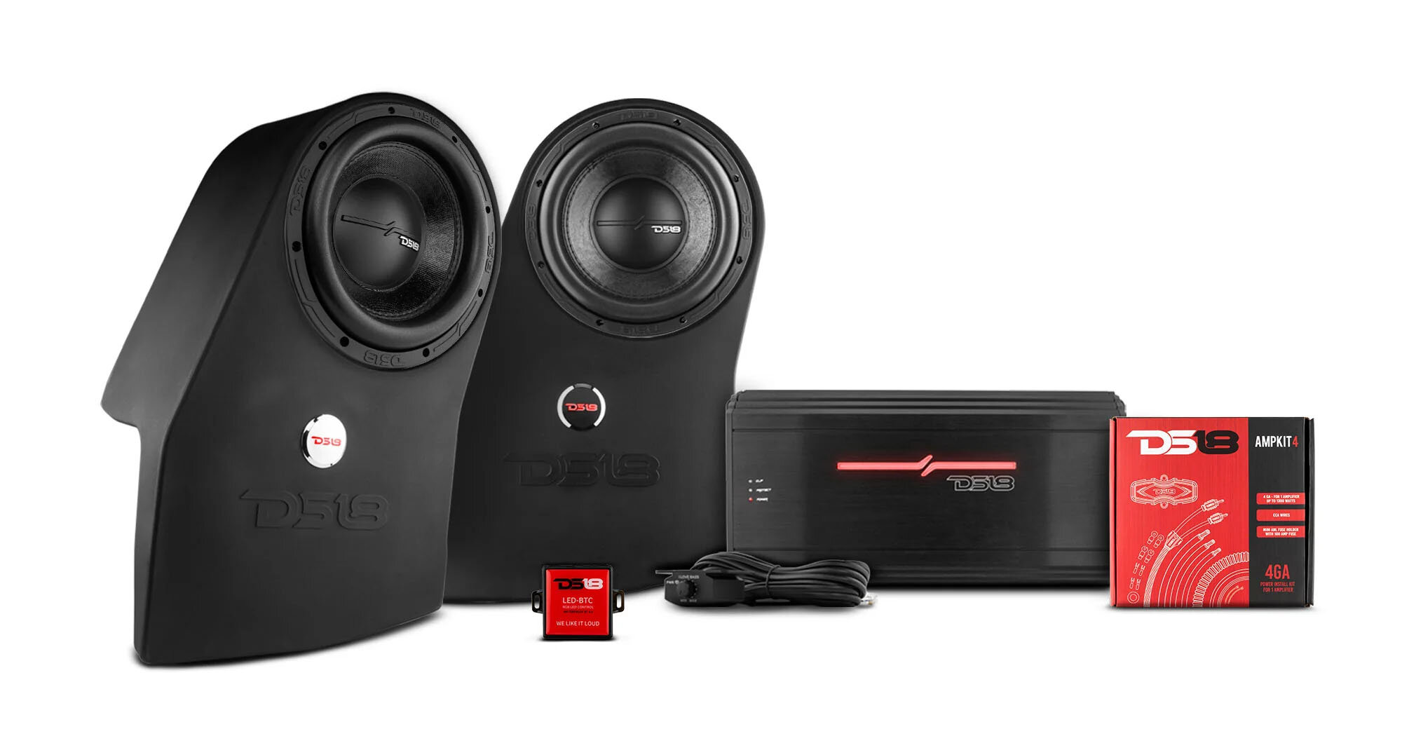 Upgrade your Jeep Wrangler JL 4-door with the DS18 Wheel Well Subwoofer Enclosure Package—an all-in-one bass solution engineered for seamless integration and rugged performance. This custom-fit system includes dual JL-SUB10/LR enclosures molded from UV-protected ABS plastic, designed to mount directly into the rear wheel wells without sacrificing cargo space. Each enclosure houses a 10" GEN-X10.4D subwoofer, delivering 400W RMS of deep, accurate bass tuned for Jeep cabin acoustics.