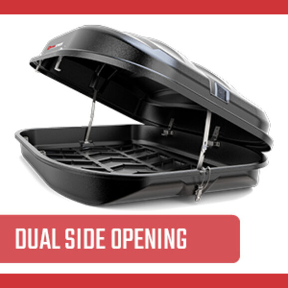 Constructed with a solid, weather-resistant shell, the DuraLiner Rooftop Cargo Carrier adds functional storage while maintaining a sleek, aerodynamic profile that reduces wind drag. Its central Locking system is designed to maximize safety. By having a single locking mechanism, it reduces the risk of accidental or partial locking, ensuring that the entire cargo box is properly secured. The locking latch system helps protect your valuables while giving you quick access when needed. This feature is especially important when the vehicle is in motion, as it prevents the lid or doors from unexpectedly opening and potentially causing accidents or damage. Whether you’re heading out for a road trip, hauling gear for work, or packing for a family vacation, this roof-mounted carrier expands your vehicle’s hauling capability with dependable performance and everyday practicality.