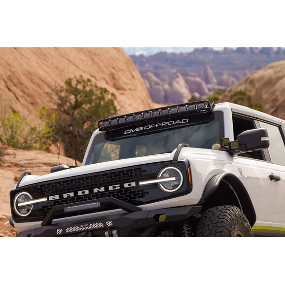 DV8 Offroad 40" Curved Light Bar Mount delivers serious overhead lighting capability with a purpose-built bracket for the 6th Gen Bronco. Designed to accept a 40-inch curved LED light bar or up to twelve 3-inch pods, this mount gives you the flexibility to tailor your night-time trail visibility. It secures directly to the factory accessory points above the windshield, avoiding drilling or permanent modifications for a clean, reversible installation.
