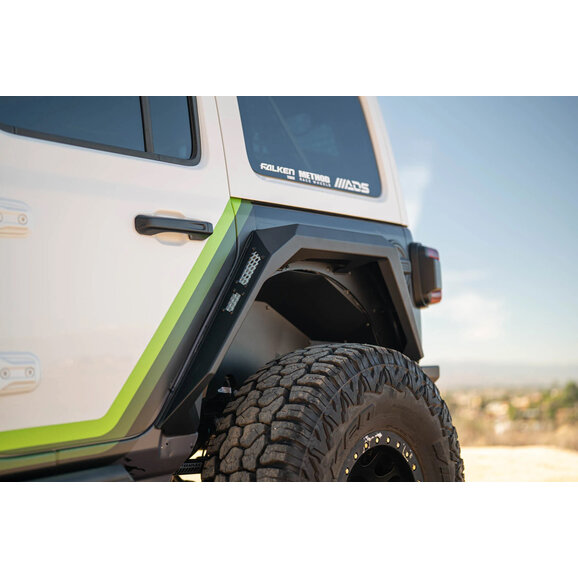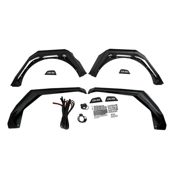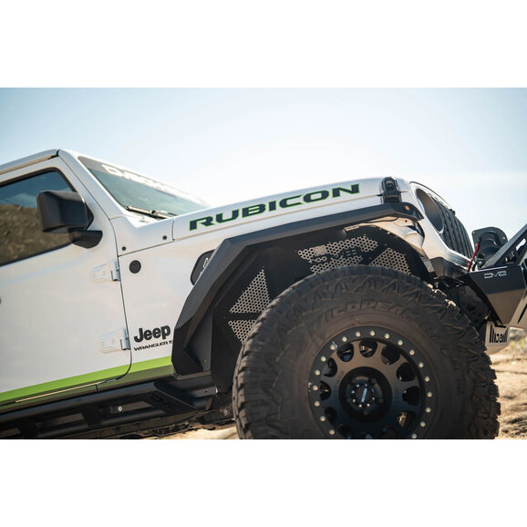 The DV8 Offroad Armor Fender Flares are designed for Jeep Wrangler JL owners who demand both style and functionality. These fender flares are built to withstand the toughest off-road conditions, thanks to their rigid armor-plated design made from heavy-duty steel. This ensures your Jeep is well-protected from rocks, shrubs, and other trail obstacles, allowing you to tackle any terrain with confidence.