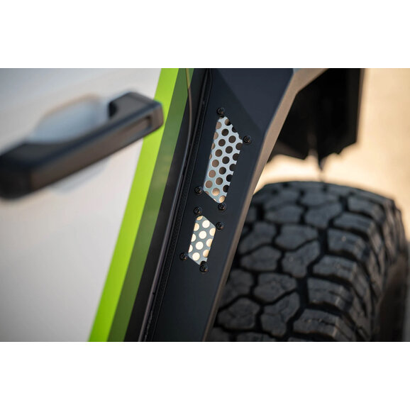 In addition to their durable construction, these fender flares feature a micro-texture black powder coat finish that offers superior resistance to corrosion and scratches. This durable finish not only enhances the longevity of the fender flares but also keeps them looking new, even after extensive use. The inclusion of plug-n-play LED turn signals improves visibility and safety, making your off-road adventures safer and more enjoyable. With customizable paintable mesh aluminum accent panels, you can personalize your Jeep to match your unique style. The easy bolt-on installation process ensures you can quickly and securely attach the fender flares, getting you back on the trails in no time.