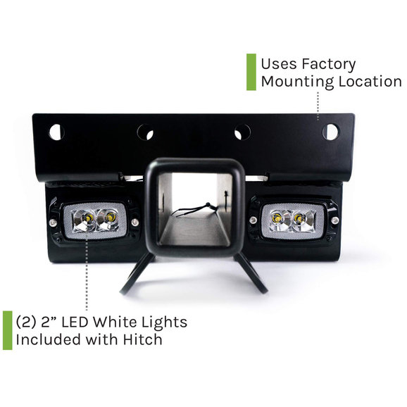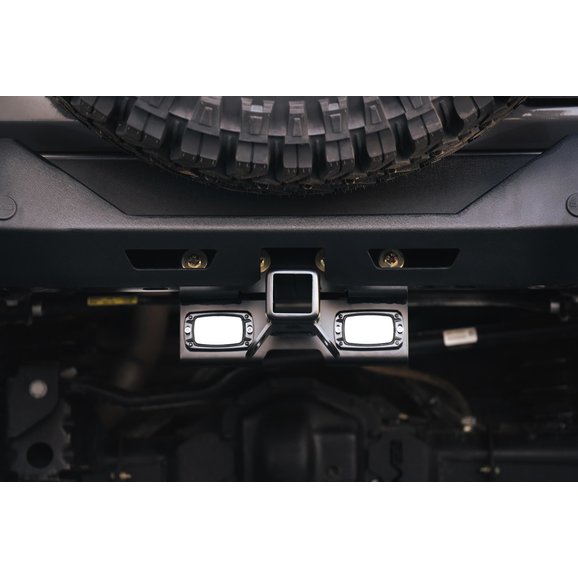 The DV8 Bolt-On Hitch with Lights is a perfect addition to your Jeep, whether you are off-roading and in need of some light during a late-night recovery or unloading your camping gear early in the morning, DV8's hitch will offer the much-needed light in the right place. Using the factory location, DV8's 2-inch accessory hitch combines the need for a rear hitch and auxiliary lighting. This hitch is designed to work with OEM bumpers and all DV8 Offroad non-hitch equipped bumpers and is designed to haul cargo or other hitch-compatible accessories.