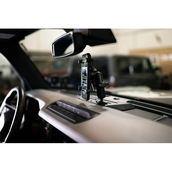 The DV8 Offroad Ford Bronco Digital Device Dash Mount delivers a sturdy, low-profile platform to keep your essential tech organized and within sight on every trail. Built from steel and finished in a micro-texture black powder coat, this panel resists vibration and wear while blending seamlessly with the Bronco interior. The mount uses the AMPS 1.9-inch hole pattern with eight PEM-nut locations, making it simple to attach popular bases from RAM, Bulletpoint, and Quad Lock. Horizontal slots accommodate additional accessories using 1/4-inch carriage bolts, so you can tailor the setup for phones, GPS units, radios, or tablets. Installation is quick and straightforward with a direct bolt-on design, and you’ll retain full functionality of the factory dash USB port. Choose this robust, modular mounting solution to keep your cockpit clean, secure, and adventure-ready.