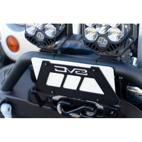 Say goodbye to license plate removal and hello to off-road freedom with the DV8 Offroad Fairlead Mounted Flip-Up License Plate Bracket. This ingenious solution keeps you street legal without compromising your Jeep's off-road prowess. Gain full access to your winch rope in seconds with a simple flip, and flip it right back down to stay street legal when you are done with recovery. Its simple bolt-on design and universal fit allows it to be compatible with a wide range of Jeeps and most standard flat and recessed fairlead mounts. Constructed with heavy-duty and high quality 3.5mm steel plate, and finished with a micro-texture black powder coating for maximum durability and corrosion resistance.
