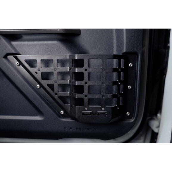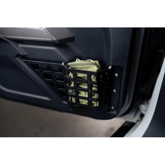 Enhance your Bronco’s interior storage and organization with the DV8 Offroad 2021-2024 Ford Bronco Front Door Pocket Molle Panels. Engineered from rugged 2mm steel and finished in a micro-texture black powder coat, these panels deliver lasting durability while resisting scratches and corrosion. They replace the flimsy factory door nets with sturdy, structured pockets that securely hold everyday items.