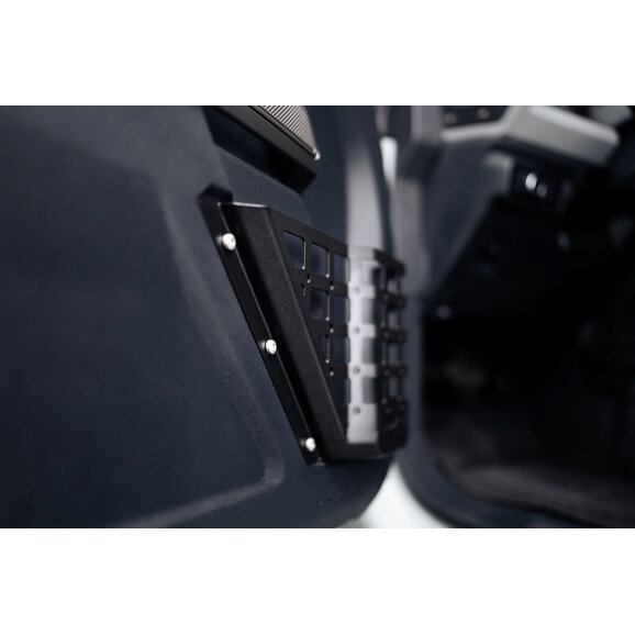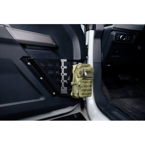Designed with real-world utility in mind, each panel features a uniquely shaped pocket that accommodates a water bottle along with room for other essentials. The exterior MOLLE grid offers multiple mounting options for pouches and accessories, letting you tailor your setup for overlanding, daily commuting, or trail days. Installation is straightforward—these panels bolt on using the Bronco’s factory hardware for a clean, OEM-like fit on both 2-door and 4-door models, including Raptor.