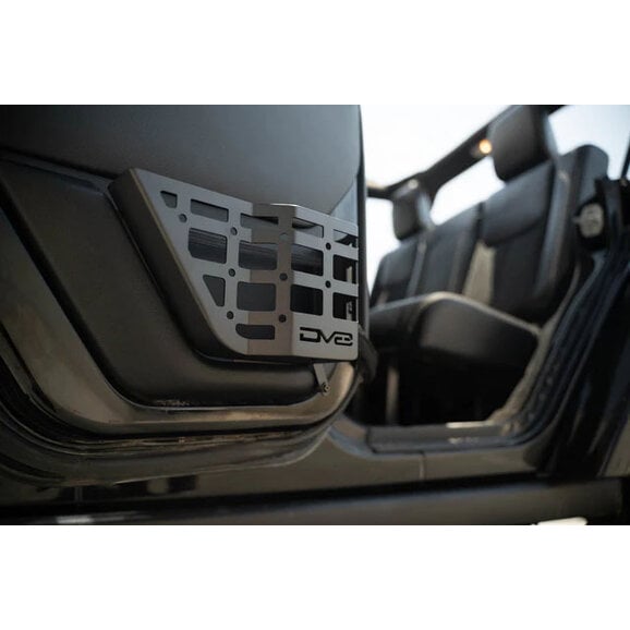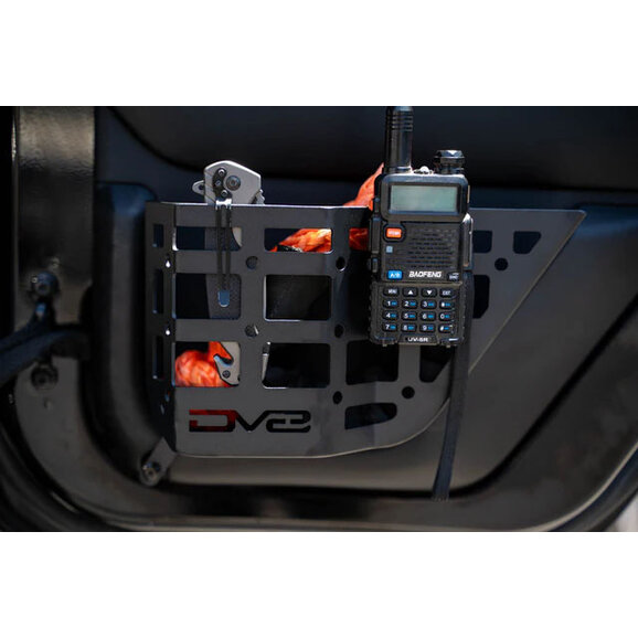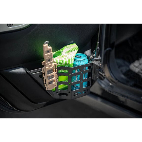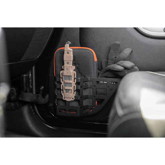 Level up your Jeep's interior storage and organization with the DV8 Offroad Pocket Molle Panels for 11-18 Jeep Wrangler JK front & rear doors. These replace the flimsy stock nets with a durable solution featuring a Molle panel for attaching tools, a first-aid kit, or other gear. The design includes a bulge for holding a water bottle and snaps in easily for a secure fit, eliminating the need to remove the door panel. Finished with a micro-texture black powder coat, these Molle Panels complement your Jeep's style while keeping your essentials organized and within reach.
