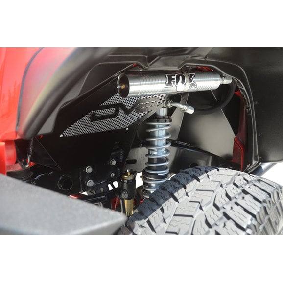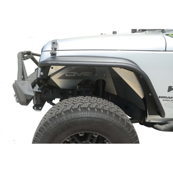 DV8 Offroad Flat Fenders provide more tire clearance and more ability to fl ex. They come with internal bracing to ensure strength and durability. They line up perfectly with the JK body lines and installation is extremely simple. DV8 fenders also come with exclusive turn signal mounting bracket, which can be used to mount an aftermarket turn signal light. Ditch the factory plastic fenders which leave your JK vulnerable to expensive body damage, and upgrade to DV8 steel fenders. These aluminum inner fenders from DV8 Offroad are designed to protect your engine compartment when aftermarket fenders are installed. They provide better airflow and a clean, streamlined look.