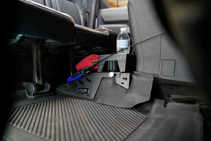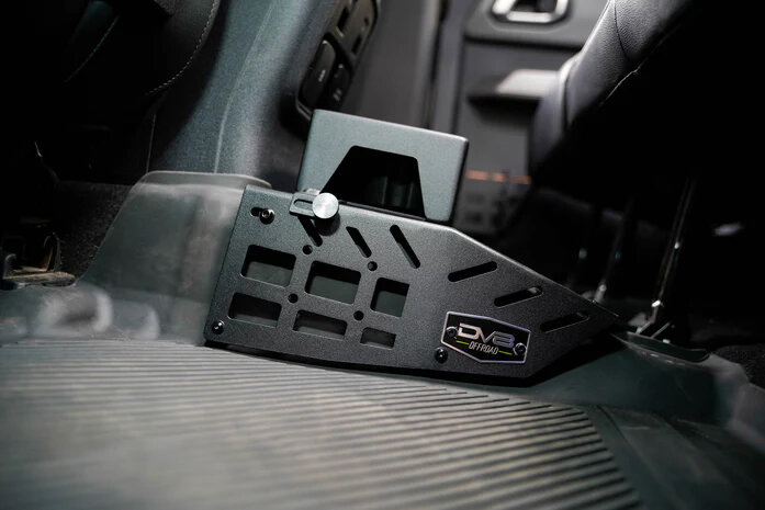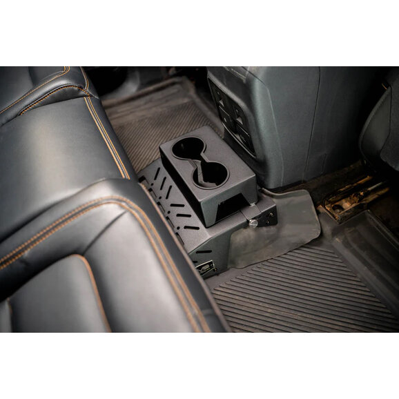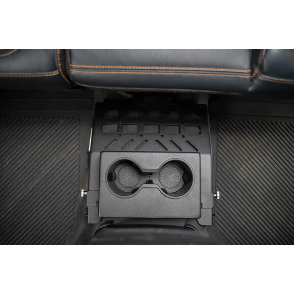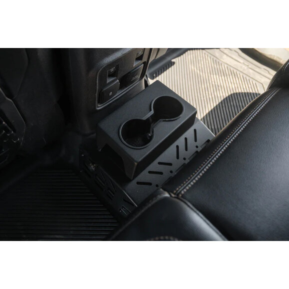 The DV8 Off-Road Rear Seat Cup Holder & MOLLE Panel is purpose-built for Ford Broncos, combining functionality and storage into one thoughtful design. This dual-use panel mounts behind the rear seats and includes integrated cup holders for passengers, while offering MOLLE webbing for stashing small pouches, radios, or gear. Finished in powder-coated steel, it delivers a durable mounting surface that holds up on daily drives or rugged trail runs.