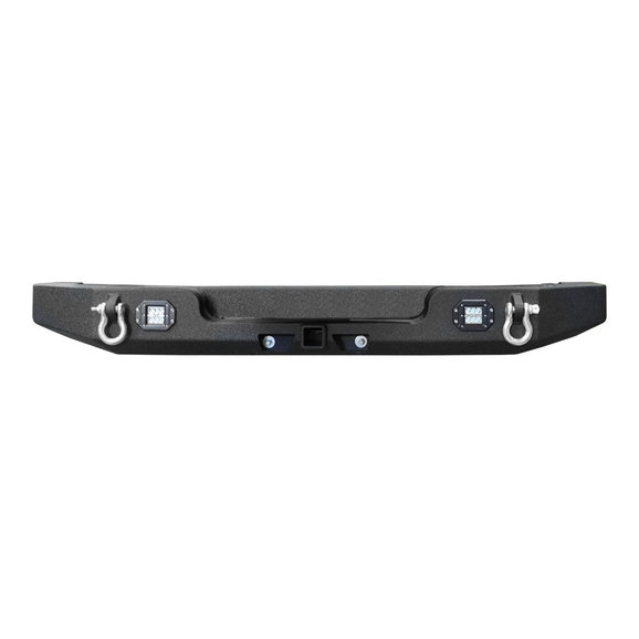 Features: This rear bumper comes with flush mount LED back up lights preinstalled, D-rings & a class III hitch (rated to 3500lbs.) for more recovery points and added light when backing up.