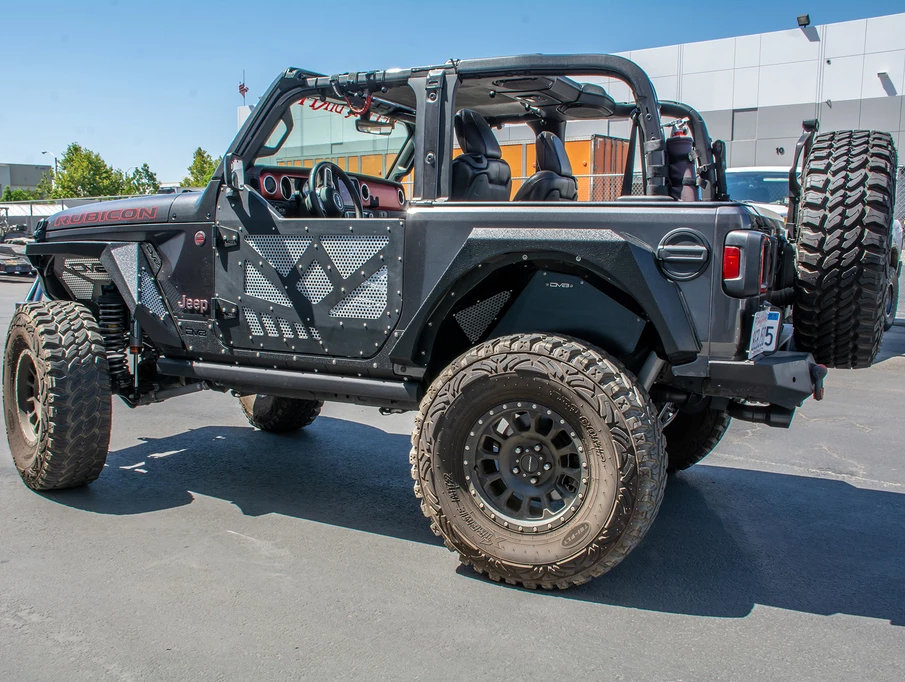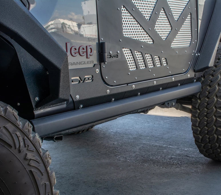 The DV8 Offroad Rock Skins provide ultimate protection for your Jeep Wrangler JL. Covering the exposed area between the door and the bottom of the body. A necessity when hitting those trails hard and articulating over those larger obstacles. These rocker guards are compatible with factory and aftermarket fenders. A complete kit that includes stainless steel hardware and installs firm with nutserts. Finished in a textured powder coat black and sold as pairs.