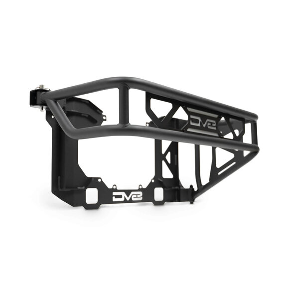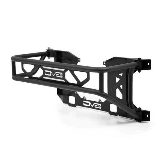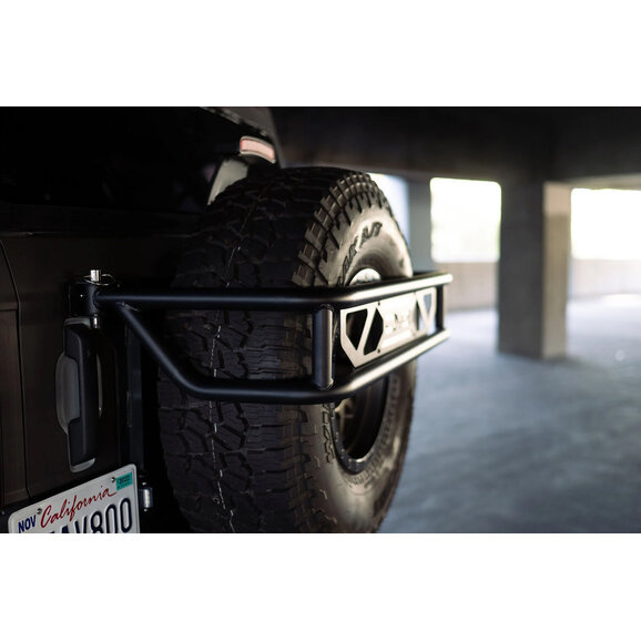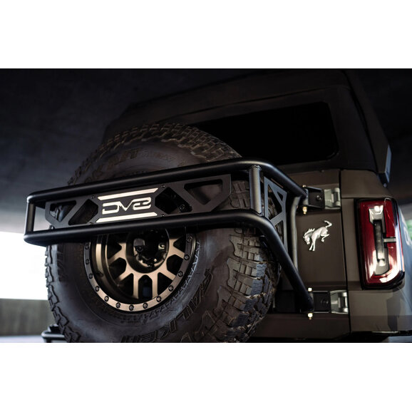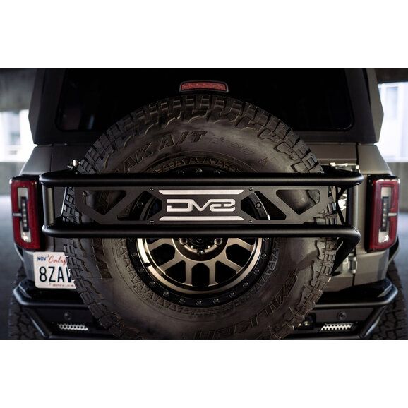 DV8 Offroad Ford Bronco Spare Tire Guard & Accessory Mount is engineered to solve two Bronco pain points: tailgate flex from larger spares and limited accessory mounting. Built from 3.5mm steel plate with 1.5/2mm steel tubing and finished in a micro-texture black powder coat, it adds serious rigidity to the tailgate by tying into multiple mounting points. The design preserves full OEM backup camera visibility while accommodating up to a 37-inch spare tire and most 20-inch wheels.