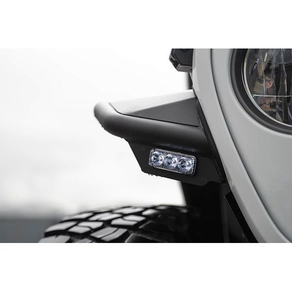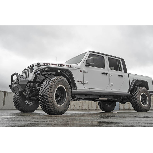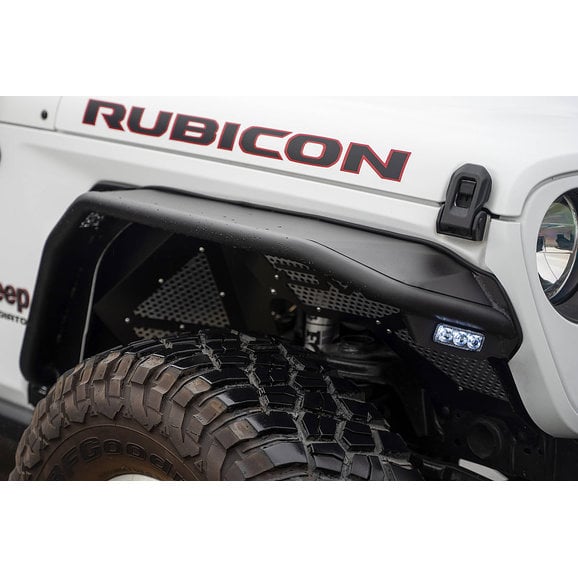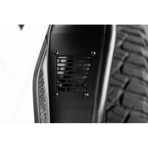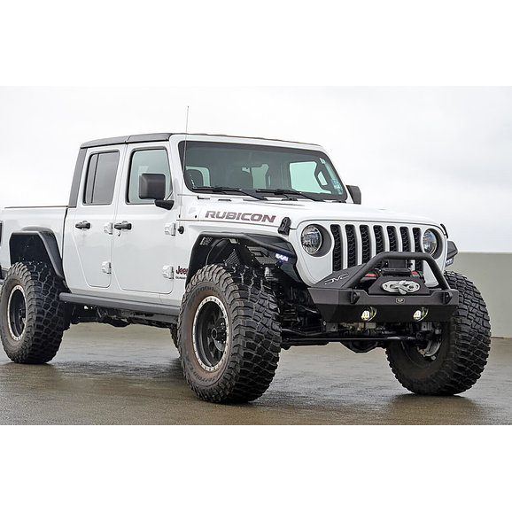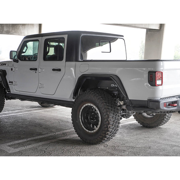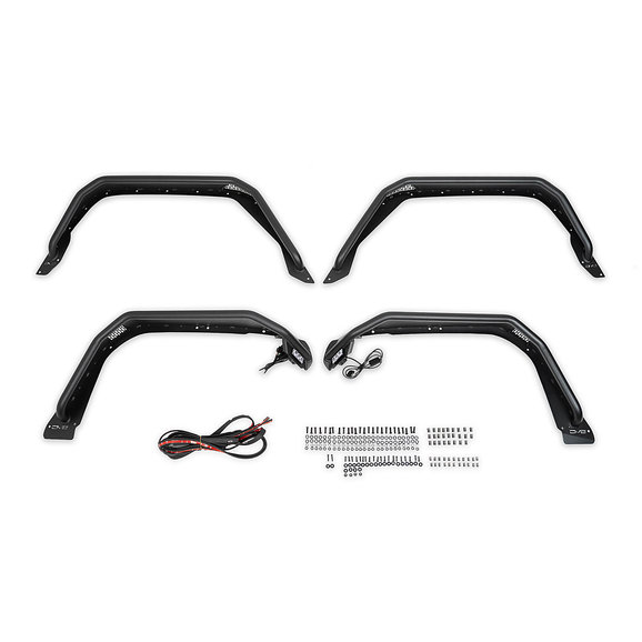 Th DV8 Offroad Spec Series Fender Flares are the perfect fit for those with a Jeep Gladiator who demand the ultimate in off-road protection and articulation. Constructed from steel and finished with a durable micro-texture black powder coat, these fender flares keep your Jeep looking sharp while providing superior protection from debris kicked up by your tires. With replacement turn signals integrated into the design, there's no wiring required. They simply plug & play using the factory connectors. They can function as daytime white running lights, and as amber blinkers when signaling a turn.