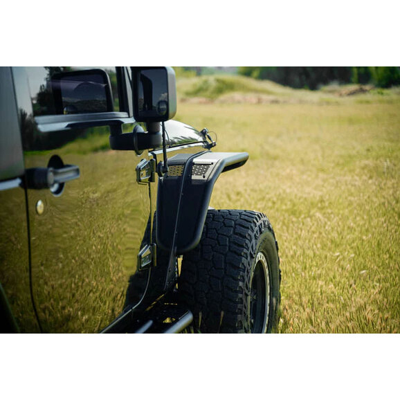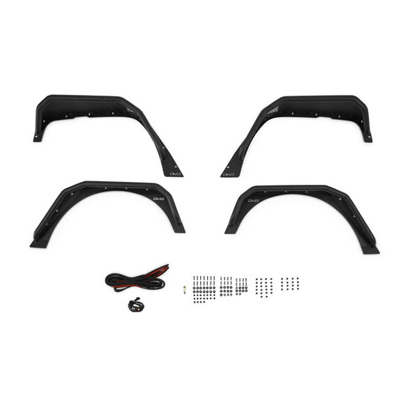 Enhance your Jeep Wrangler JK with the DV8 Offroad Spec Series Fender Flares are made from durable tube and plate steel for protection and style. They offer increased ground clearance for better off-road performance. A rubber seal protects the fender seam and prevents debris build-up. The fenders have a micro-texture black powder coat finish for weather resistance and include plug-and-play front marker lights. Installation is a bolt-on process with no cutting or drilling required.