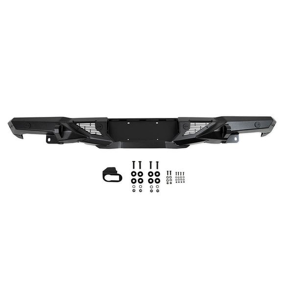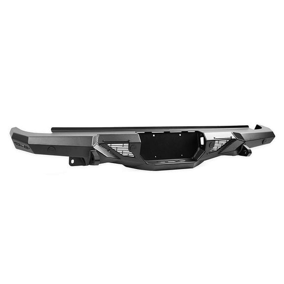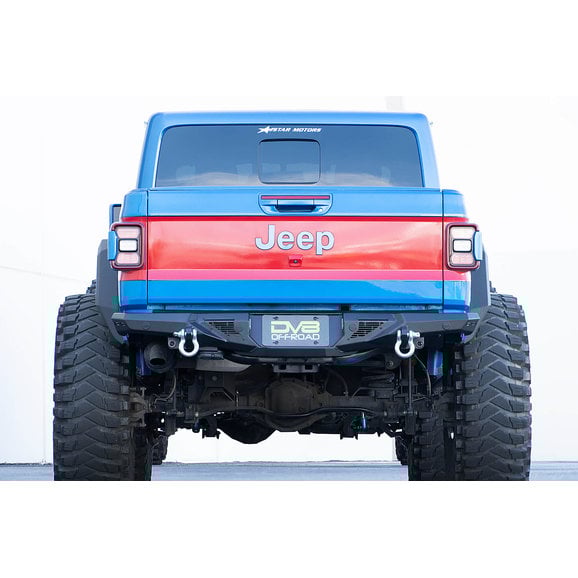 The DV8 Spec Series Rear Bumper is exclusively designed for 2020-23 Jeep Gladiator JT models, and offers a high clearance design for superior off-road and rock crawling performance. Bumper is engineered from solid steel and includes a rust-resistant black powder coating for excellent longevity, as well as accented satin black aluminum panels. Crafted with two clevis mount capable of fitting 3/4-inch D-ring shackles as well as two three-inch light pod mounts for superior night vision. Interior zip-tie tabs allow for clean wire management. Includes all hardware needed for hassle-free installation and features a one-year warranty.