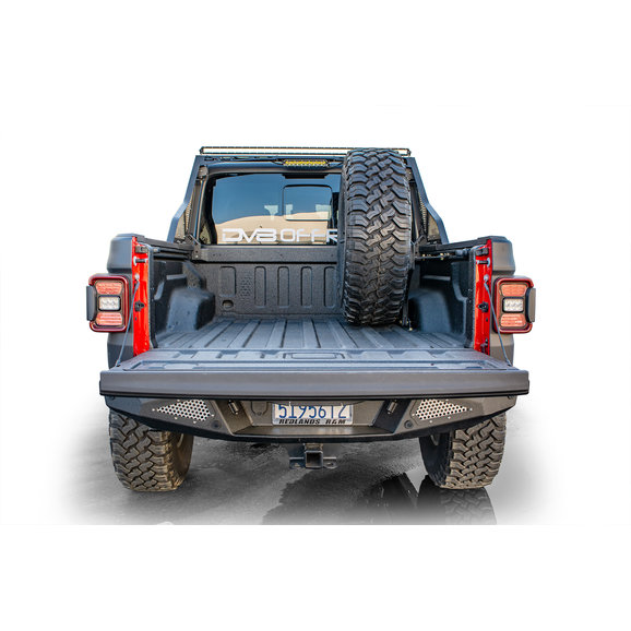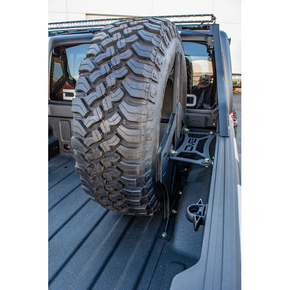 The DV8 Offroad Stand Up In-Bed Tire Carrier for Jeep Gladiator JT models gives you the ability to mount up to a 42 inch tire with any bolt pattern to the inside of the bed of your Gladiator. This stand up tire carrier relocates your spare tire from the undercarriage factory location to the spacious area of your rear bed. You can run this DV8 Offroad carrier on either side of the bed or even two at the same time! This heavy-duty carrier is made of 3/16 inch steel which offers a strong and secure mounting system to prevent any movement on or offroad.