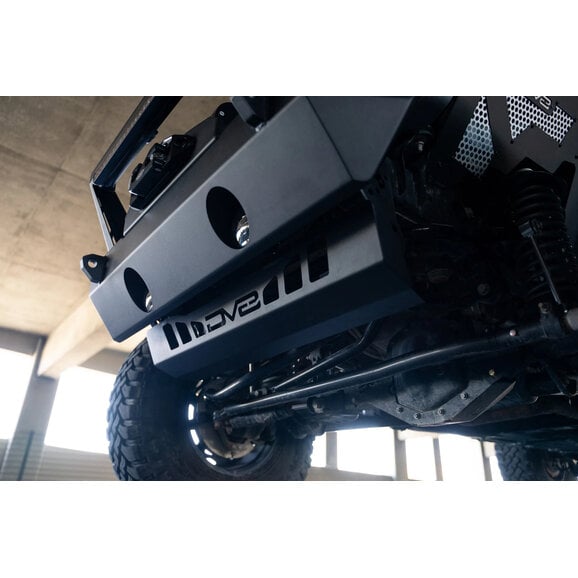 Protect the front undercarriage of your Jeep Wrangler JL or Gladiator JT from unnecessary damage with the DV8 Offroad Sway Bar Disconnect Skid Plate. Made 3mm steel plate this skid plate will protect the crash bar and sway bar electronic disconnects from rocks, shrubs, and other obstacles while on the trail. This skid plate is designed to fit precisely with a DV8 front bumper using factory mounting holes.
