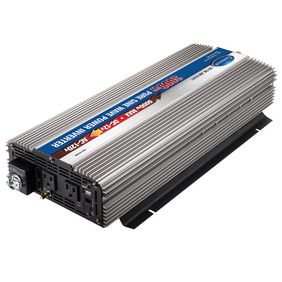 The Eastwood 3000W Automotive Power Inverter is a heavy-duty professional-grade piece of equipment designed to bring 120-volt power to any automobile or truck. It features a true sine wave output that is capable of efficiently running a wide variety of devices. Perfect for camping, the job site, and everywhere in between. This unit must be wired into the electrical system. Not for use in 24v electrical systems.