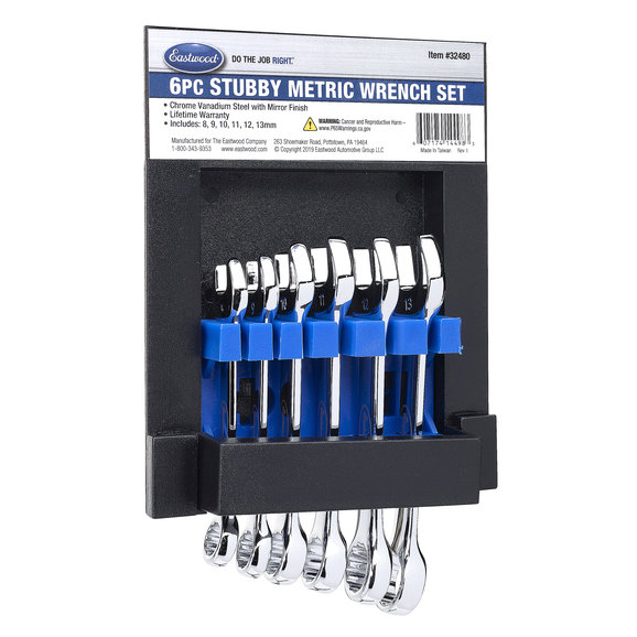 Eastwood's 6-Piece Stubby Metric Wrench Set is designed for durability thanks to its unique Chrome Vanadium Steel design. Features a full lifetime warranty and engineered to withstand whatever is thrown at them, they are top quality tools at an affordable price.
