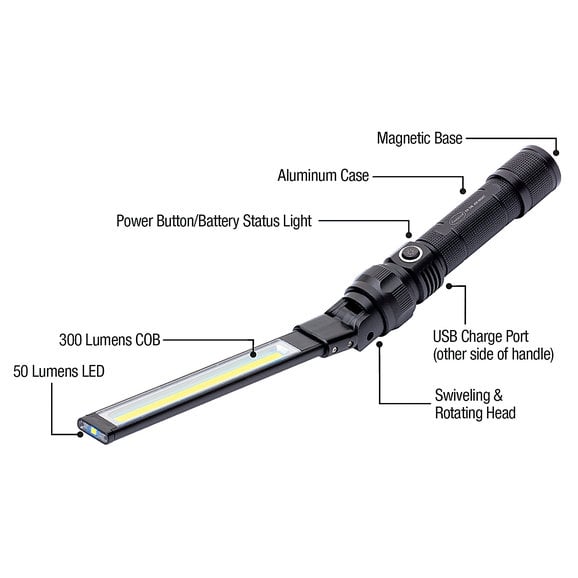 Bright COB LED: Offers powerful and consistent lighting to ensure optimal visibility.