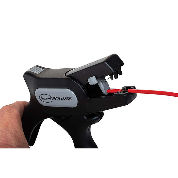 Thanks to this Eastwood Inline Wire Stripper, you can quickly and cleanly strip wire in tough-to-access areas. Built with high-strength reinforced nylon with a high carbon steel blade, and includes an adjustable wire stop for 8-12mm stripped wires. Features a one-year warranty.