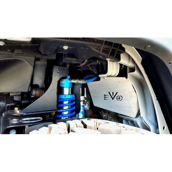 Made from laser cut aluminum and CNC Press Brake formed, these EVO Mini Liners are lightweight and resilient. Their compact design allows them to protect your wiring harness connector while working with aftermarket suspension components and creating a more open engine compartment. They are easy to install and give a clean, finished look to your wheel wells.