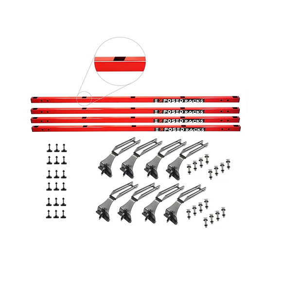 Carry Anything with the strongest crossbars on the market! The versatile Exposed Racks 4pc Hardtop Tent Roof Rack is designed specifically for the factory hardtop on your Jeep Wrangler JL and Gladiator JT. Fitting both the 2-Door and 4-Door applications. A great option for overlanding with the whole family and sleeping in a roof top tent. This unique rack installs to the side gutter rails while also resting on the hardtop with multiple feet to evenly distribute the load. Includes all necessary hard top brackets and stainless steel hardware. Installs in minutes without any drilling