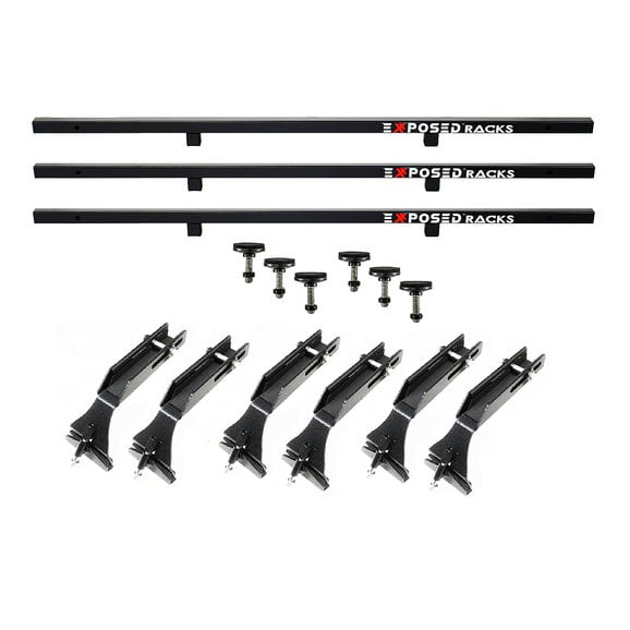 The extremely versatile Exposed Racks Solid Crossbar Hardtop Tent Roof Rack is designed specifically for the factory hardtop on your Jeep Wrangler Unlimited JK 4-Door. This unique rack installs to the side gutter rails while also resting on the hardtop with multiple feet to evenly distribute the load. Includes all necessary hard top brackets and stainless steel hardware.