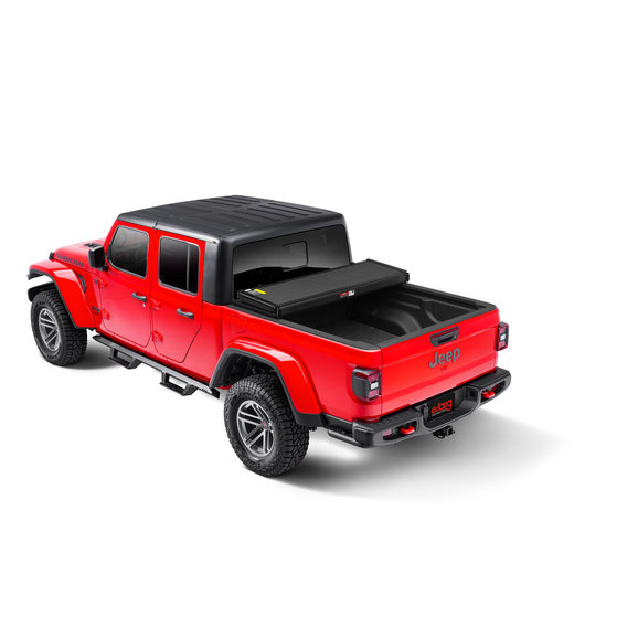 As the age-old adage goes: Out of sight, out of mind. With this Solid Fold 2.0 Tri-Fold Hard Bed Cover you can keep your gear & tools out of view and protected from the elements. Featuring snap-on perimeter seals, built-in corner & hinge seals, a patented Jaw-Grip, EZ-Lock clamps, and 1" thick EnduraShield Panels to protect from Mother Nature. The clamps attach directly to the bed flanges on your Gladiator with no damage and no drilling, cutting, alterations required! The panels are made from automotive-grade polymers that resist UV fading, scratches, dents better than fiberglass or aluminum. Matte black textured finish with powdercoated aluminum frames & hinges. Made in the USA!