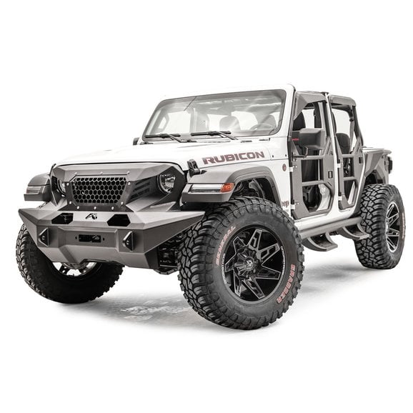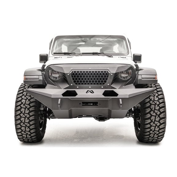 Design: Focusing on an aggressive off-road look the Grumper combines the grille with a front full width winch bumper that is designed to give you extra clearance for larger tires along with side vents & a large mesh insert allowing for premium air flow to your engine. D-ring mounts add some extra recovery points and an optional light bar insert is available to accommodate most 20" LED light bars. If you have a larger winch like a Zeon from Warn no problem the Grumper has the ability to fit one in there.