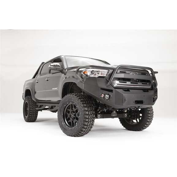 The Fab Fours Premium Front Winch Bumper series is a heavy-duty front bumper upgrade engineered for 2016–2023 Toyota Tacoma vehicles and features durable strength, recovery readiness, and tailored build options. Each variant is designed around a reinforced winch mounting platform that supports powerful recovery equipment while maintaining a rugged, trail-ready appearance. Depending on your build goals, Tacoma owners can choose from multiple guard configurations: a full grille guard for maximum front-end protection, a pre-runner guard for enhanced protection and styling, or a no-guard version for a cleaner, simpler look.