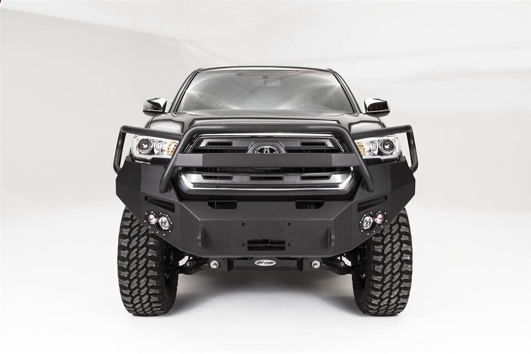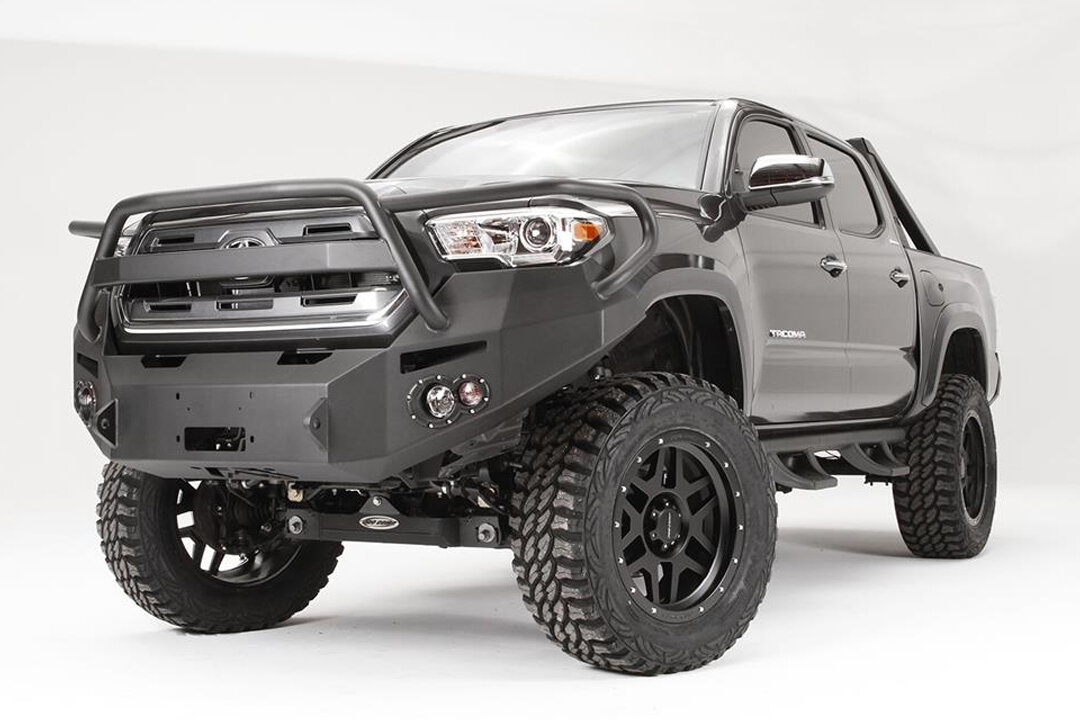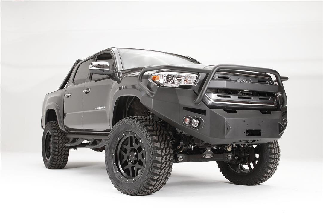 All-In Front Winch Bumper Solution: The Fab Fours Premium Front Winch Bumper family is designed specifically for 2016–2023 Toyota Tacoma, offering a rugged front-end foundation that supports heavy-duty recovery gear and bold, aggressive styling.