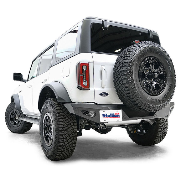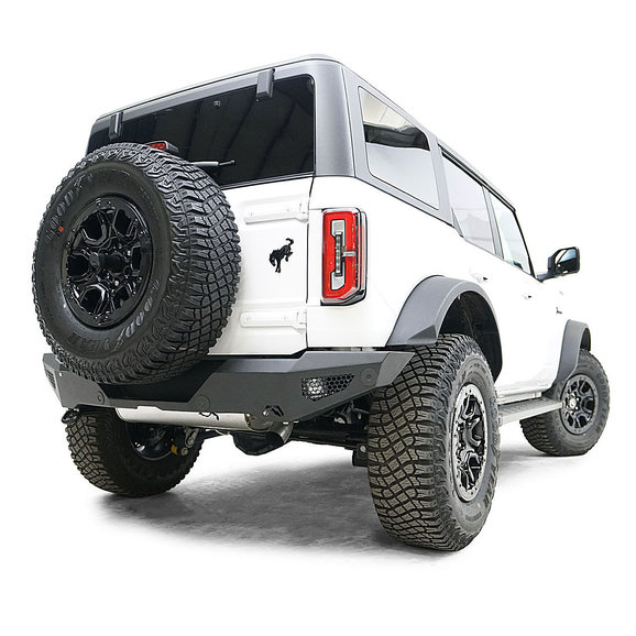 Take your Bronco to the next level of protection and style with the Fab Fours Standard Rear Bumper. This bumper is built tough out of 11-gauge American steel and finished with an optional two-stage black powder coat for long-lasting durability and endurance. Designed specifically for the Bronco, this bumper is sensor compatible. Two rear-side openings allow for 3x3” LED cube light mounting (not included.) Retains OE tow-hooks. Backed by a Lifetime Warranty on structural and manufacturer defects as well as a Two-Year Warranty for rust (for powder-coated bumpers), this bumper is built to last and is ready to take on whatever you throw at it.