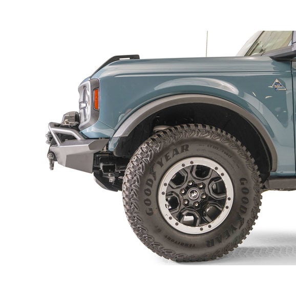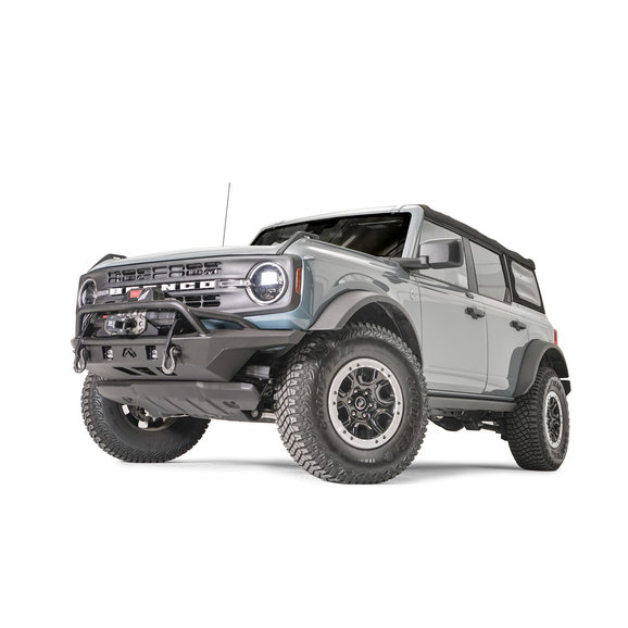 Take your Bronco to the next level of performance and protection with the Fab Fours Stubby Front Bumper. This bumper is built tough out of 3/16” American steel and finished with an optional two-stage black powder coat for long-lasting durability and endurance. The high and tight design allows for maximum tire clearance so your Bronco can wear bigger and tougher tires. Available with or without a pre-runner guard, you can decide which setup best suits you. This bumper also features integrated D-ring mounts and is ready for mounting of a winch or LED lighting. Backed by a Lifetime Warranty on structural and manufacturer defects as well as a Two-Year Warranty for rust (for powder-coated bumpers), this bumper is built to last and ready to take on whatever you throw at it.