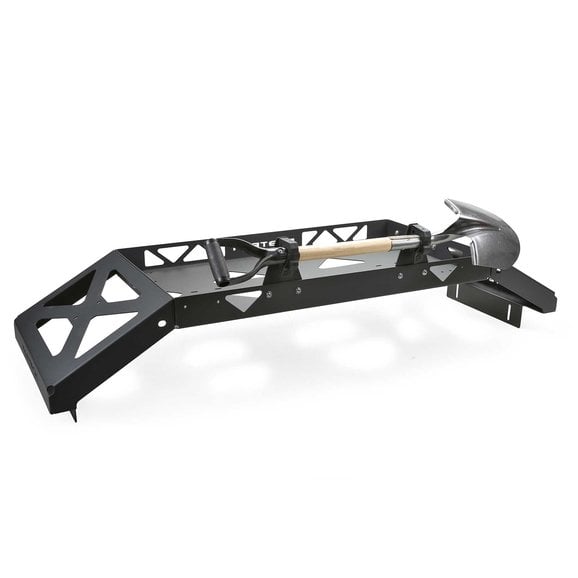 Bolt-On Installation: No cutting, drilling, or other modifications are required. The Fabtech Cargo Rack Shovel Mount simply bolts onto the edge of the rack with the included brackets.