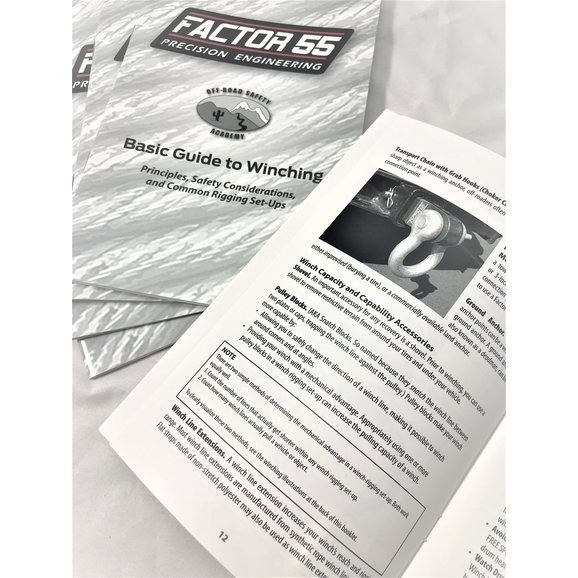 If you are new to winching or want to refresh your winching skills, Factor 55's Basic Guide to Winching Manual will be a great read as well as an asset. Co-Authored by Bob Wohlers and the Off-Road Safety Academy, this 39 page booklet will be a great tool for learning and help your off-road recovery skills get up to speed. This manual comes complete with pictures and diagrams that covers everything from terminology to common rigging set ups and features the STOPA- Stop, Think, Observe, Plan, Act- Stuck Assessment and Recovery Plan Checklist. The manual comes in a convenient size that easily stores in your console, glove box, or interior storage netting.