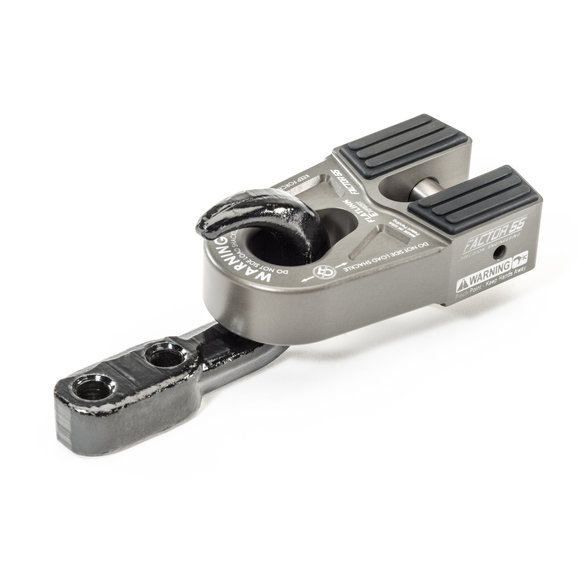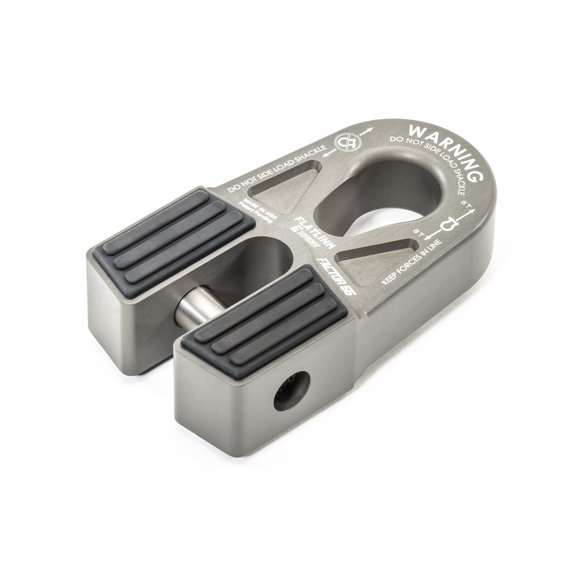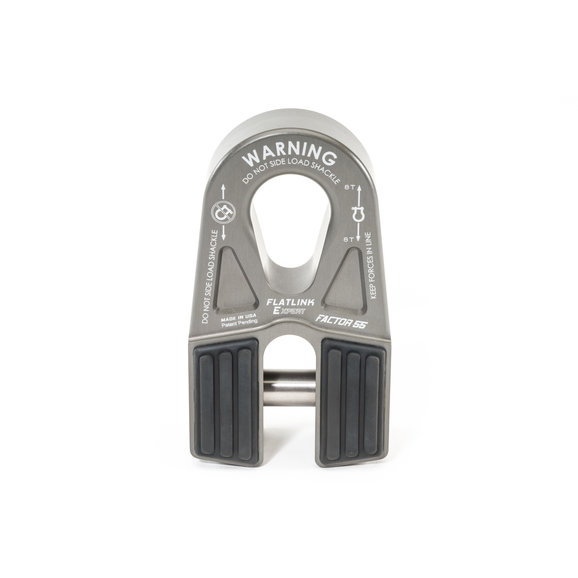 The FlatLink E (Expert) is a variation of our popular foldable standard FlatLink winch shackle mount. The FlatLink E provides a means to eliminate the conventional winch hook and replace it with a safer and more secure screw pin shackle resulting in a CLOSED SYSTEM WINCHING operation. The large pear shaped shackle mounting hole allows for attachment to either the pin or bow end of common screw pin shackle, as well as common OEM recovery points. This makes the new FlatLink E more versatile than the current FlatLink design, but it also adds the possibility of a dangerous shackle side loading condition (See Picture), especially during momentary slack conditions. A shackle side loading condition is not possible with our standard FlatLink shackle mount due to the shackle pin mounting constraint. For the recreational off roader we highly recommend the safer standard FlatLink product, not the FlatLink E. This way the winch operator does not have to monitor whether the shackle may have shifted and rotated in the recovery tackle. The FlatLink E is only available in the Military Specification Anodizing (Mil-A-8625 F Type III) hard anodized gray finish. Made in USA