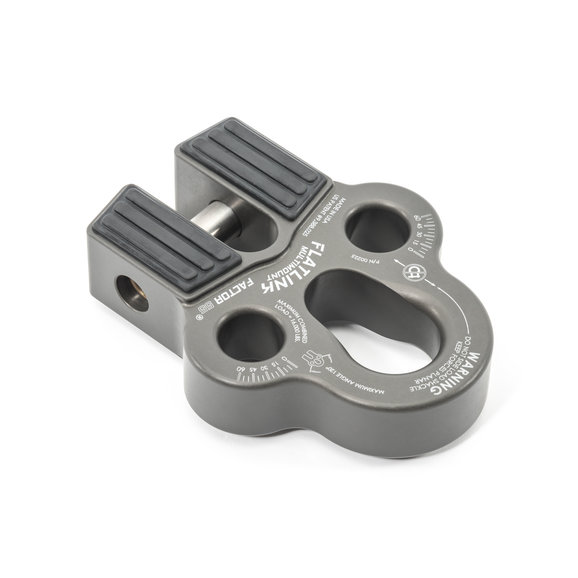 The FlatLink MultiMount by Factor 55 is designed for use in a diffiult off road recovery situation where two different winch pull directions are necessary. The MulitMount includes two additional shackle pin mounting holes that give secure shackle attachment points for multiple winch pull directions. This unit is lightweight, but extremely heavy duty and is manufactured from precision CNC machined 6000 series aluminum. Available in gray or red finishes. Can be used with either steel cable or synthetic winch ropes.
