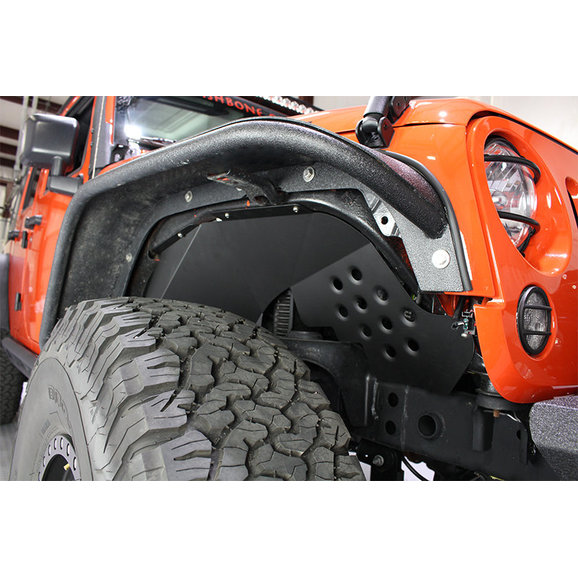If you have Tube Fenders, you need a set of Aluminum Inner Fenders to finish the look. Once installed these offer protection from rocks and debris entering the engine compartment. The inner fenders are stamped from Aluminum then powder coated in textured black finish. Designed for the Jeep JK 2 and 4 door vehicles. Sold as a set of four.