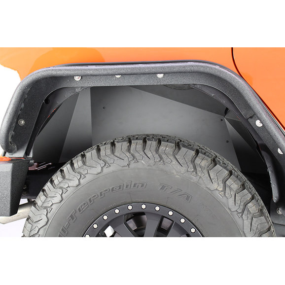 Fishbone Offroad Aluminum Rear Inner Fenders are the perfect answer to finishing the look of your new fenders. Flat fenders are great for clearance but open up the wheel housing and can be unsightly unless they are finished with inner fenders. Stamped from aluminum and powder coated for protection, these inner fenders will protect the body of the Jeep at the rear and can handle the abuse from debris flying off of the road and the trail.