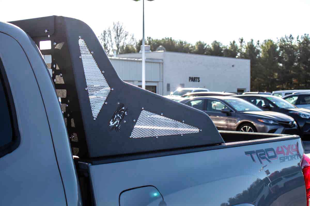 Constructed from heavy-duty steel and finished in a corrosion-resistant black powder coat, this Chase Rack delivers a rugged platform for mounting auxiliary lighting, shovel mounts, recovery tools, and other overland essentials. The standard rack (FB21249) offers a clean, open framework, while the MOLLE window panel variant (FB21243) integrates a modular panel that accepts MOLLE accessories and storage pouches for quick access to essential gear. Both configurations are designed for a precise, vehicle-specific fit that aligns to factory mounting points for a secure, rattle-free install. Whether you’re mounting lights for night trail runs or carrying recovery gear for expedition builds, this Chase Rack enhances cargo organization and utility while adding a rugged aesthetic to your Toyota Tacoma.