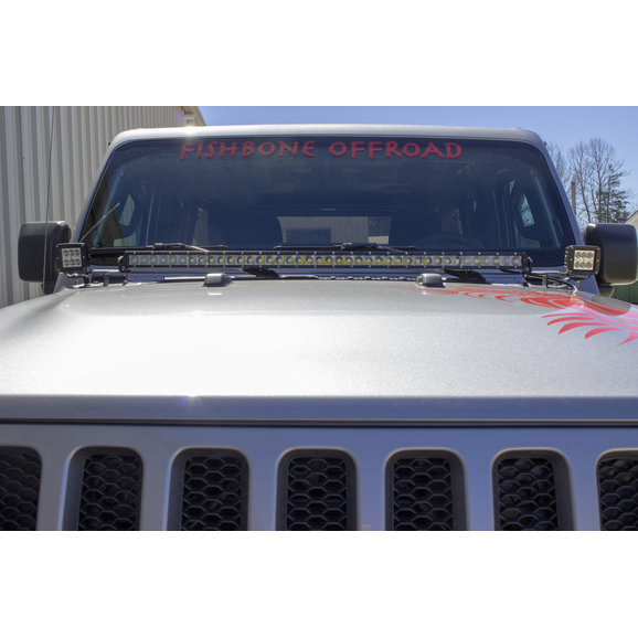 Adding some auxiliary lights to the hood of your Wrangler JL & Gladiator JT has been made simple with the Cowl Light Bracket from Fishbone Offroad. This simple mounts not only allow you to mount two cube lights but also a 40" light bar to the hood of your Jeep giving you plenty of light to see on those dark nights.